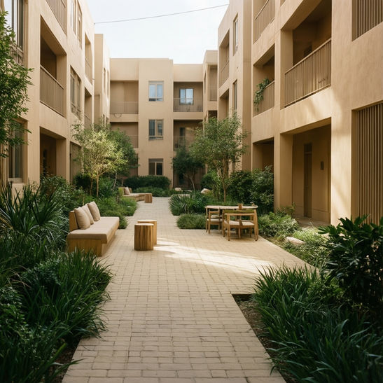 Пример реализации малоэтажного жилого комплекса, демонстрирующий подход к планировке и дизайну жилых пространств. Подчеркивает опыт в создании комфортной и функциональной среды.